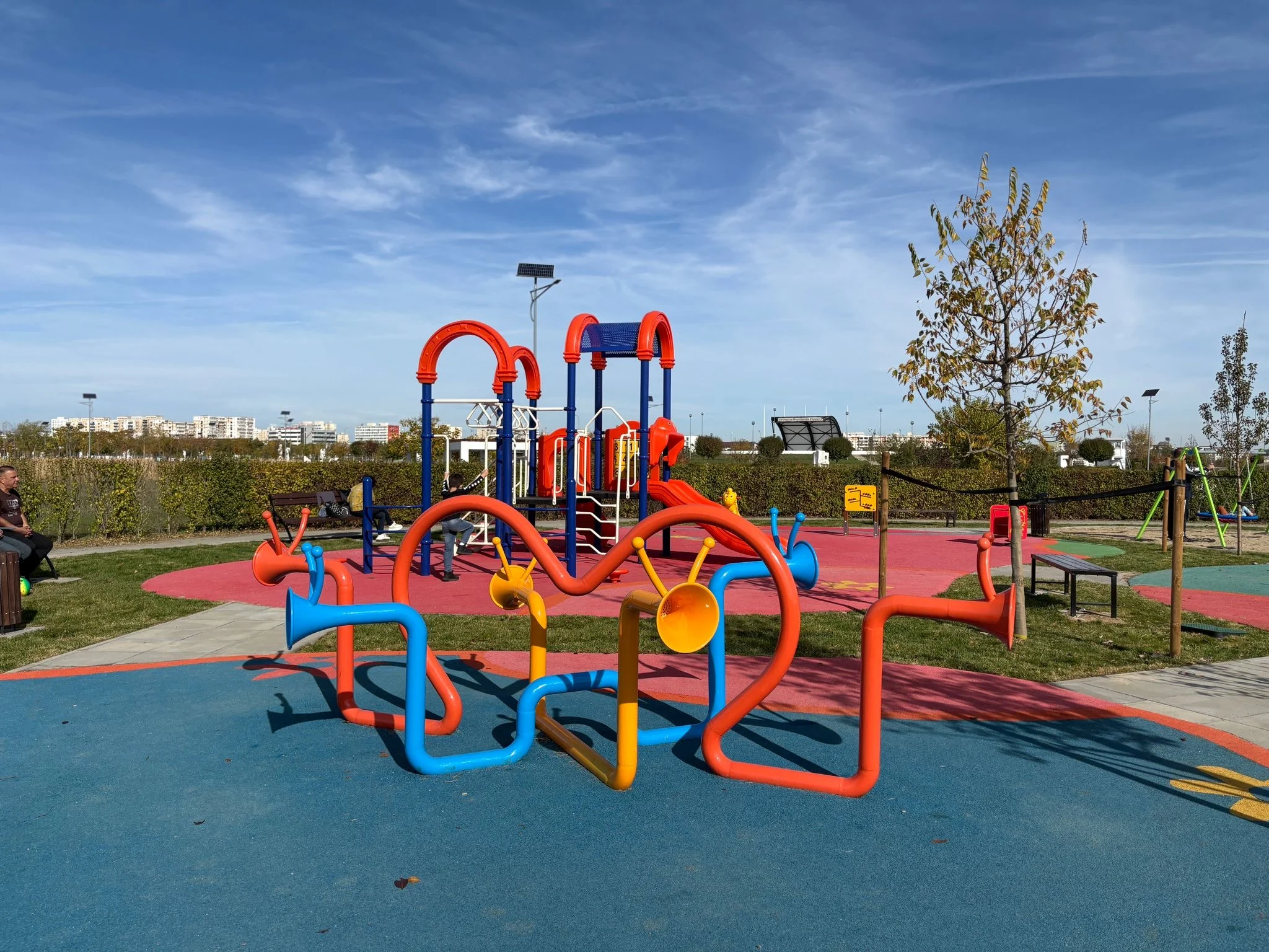 Spațiul se remarcă printr-o serie de elemente speciale, precum ansamblul central Fun Land, cu panou educațional și multiple opțiuni de joacă, caruselul incluziv și echipamentele pentru experiențe senzoriale, o zonă interactivă cu trompete și tobe pentru stimulare auditivă, leagănul dublu adaptat pentru joc în perechi, spațiul de fitness cu nisip și gălețușe care dezvoltă creativitatea, precum și aleea senzorială cu carusele cub, care asigură siguranță și protecție.